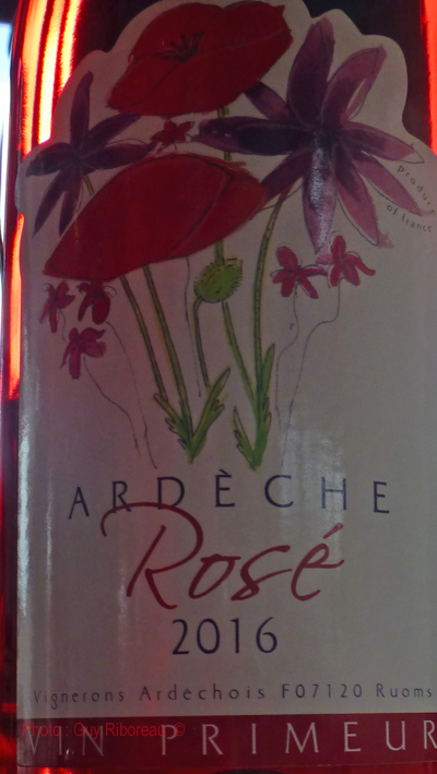 A l'apéritif : un rosé Primeur 2016 des Vignerons Ardéchois. 3,00€