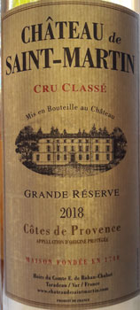 Ajoutons cet autre provençal, cru classé, Grande réserve 2018 du Château de Saint-Martin qu'Adeline de Barry élabore avec un soin tout particulier. Un autre rosé de gastronomie, soyeux et long en bouche, qui s'acccorde merveilleusement avec une salade de poulpe, betterave, grenade et noix...