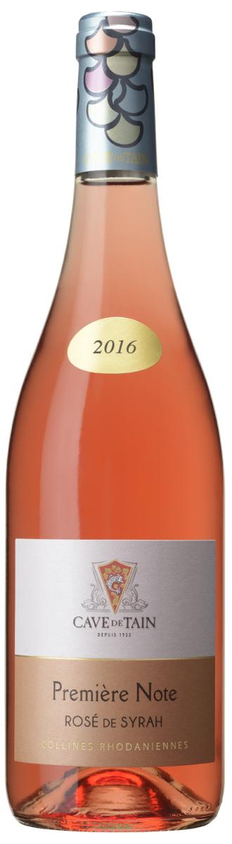 - PREMIÈRE NOTE ROSÉ DE SYRAH 2016 - IGP Collines Rhodaniennes Cépage : 100 % Syrah. Dégustation : robe rose bonbon, brillante aux reflets bleutés. Nez intense framboise fraîche, bonbon anglais. Bouche gourmande, acidulée, fraise et poire, la finale est tout en rondeur et en équilibre. Ses plats : apéritif, salades, viandes froides, barbecues, poissons aux épices, tagines orientaux. Circuit de distribution : vente directe, cavistes, restauration. Prix TTC départ à la boutique : 4,80 euros. La Cave de Tain au pied de l'Hermitage, produit une incroyable quantité de cuvées à partir des appellations de la région. Ce rosé issu des collines rhodaniennes est d'un rapport qualité-prix très intéressant.