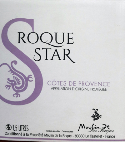 - ROQUE STAR 2016 - AOP Côtes de Provence Cépages : 50 % Cinsault, 32 % Mourvèdre, 18 % Grenache. Dégustation : robe rose saumoné, lumineuse. Nez gourmand fruits rouges cerise-fraise, une touche mangue et estragon. Bouche de bel équilibre entre fraîcheur, fruits et fines épices, longue sur les agrumes. Ses plats : crevettes thaï, tarte tomate et anchois, lotte au curry, gouda au cumin. Circuit de distribution : vente directe à la boutique, cavistes, CHR. Prix TTC départ cave : 6,60 euros. Disponible également dans le NOUVEAU BIB "Le Cube" d'1,5 l (14,50 euros). Un conditionnement original, un petit cube de moins de 15 cm de côté, facile à transporter en pique-nique avec sa poignée.