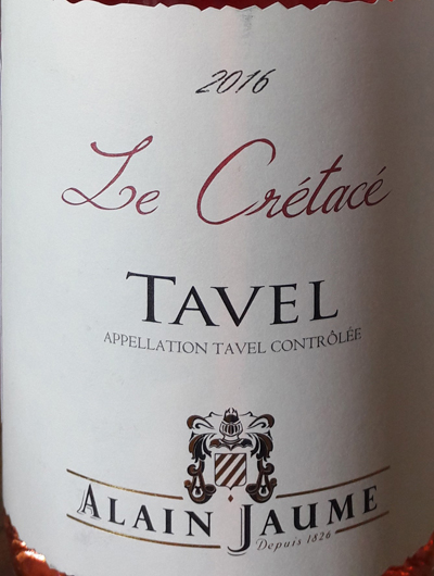 - LE CRÉTACÉ 2016 - Tavel. Cépages : 60 % Grenache noir, 30 % Syrah, 10 % Mourvèdre. Dégustation : robe couleur fraise, intense. Nez très expressif de fruits avec un côté fraises écrasées qui domine. En bouche, une belle longueur associée à une matière toute en rondeur et finesse. Ses plats : sushis, rougets grillés, plats épicés (tajine), plats d'été. Circuit de distribution : vente directe, cavistes, CHR. Prix TTC départ cave : 11,90 euros. Si le Crétacé a vu la disparition des dinosaures, ce Crétacé là illustre avec bonheur le retour des plats de l'été et des boissons susceptibles de les accompagner.