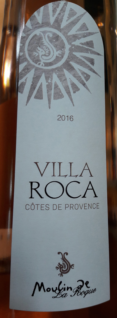 - VILLA ROCA 2016 - AOP Côtes de Provence - NOUVEAU Cépages : 55 % Grenache, 40 % Cinsault, 5 % Syrah. Dégustation : robe rose saumon à nuance argentée. Nez intense fruits rouges fraise et framboise des bois, vanille, une note florale rose. Bouche élégante, une jolie matière et de fins tanins, épicée poivre gris, jolie persistance fraîche mentholée. Ses plats : anchoïade, blanquette de veau, pâtes pesto-parmesan, chèvre frais et tomate confite.. Circuit de distribution : vente directe à la boutique, cavistes, CHR. Prix TTC départ cave : 9,10 euros. Un rosé typique de la Provence : fraicheur, structure. Très agréable.