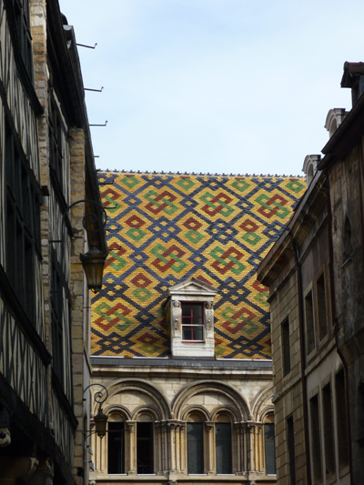 Moutarde, pain d'épice, crème de cassis : c'est le trio gagnant quand on évoque le département de la Côte d'Or et en particuler la ville de Dijon. A peine arrivée dans la capitale des ducs de Bourgogne, j'écoute avec attention la recette du pain d'épices et je trinque à la santé des dijonnais, un verre de kir royal en main. Vous le savez sans doute, le kir est un mélange de crème de cassis et de vin blanc cépage aligoté, le kir royal est avec du Crémant de Bourgogne (le kir impérial avec du champagne). Cela dit, chacun apporte sa touche personnelle au précieux breuvage; le mien se nommait le "Téméraire" idée du  restaurateur où je déjeune. Un rappel historique s'impose : le nom des quatre ducs de Bourgogne : Philippe le Hardi, Jean sans peur, Philippe le Bon et Charles le Téméraire. Les ducs de Bourgogne restent en effet les stars de la ville.