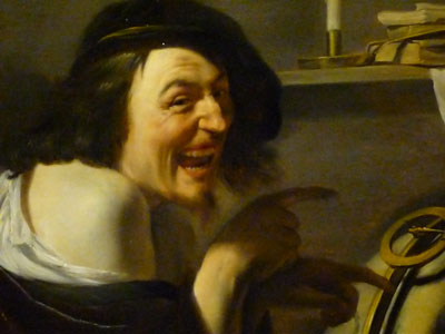Démocrite semble ici se moquer de son voisin d'exposition Héraclite