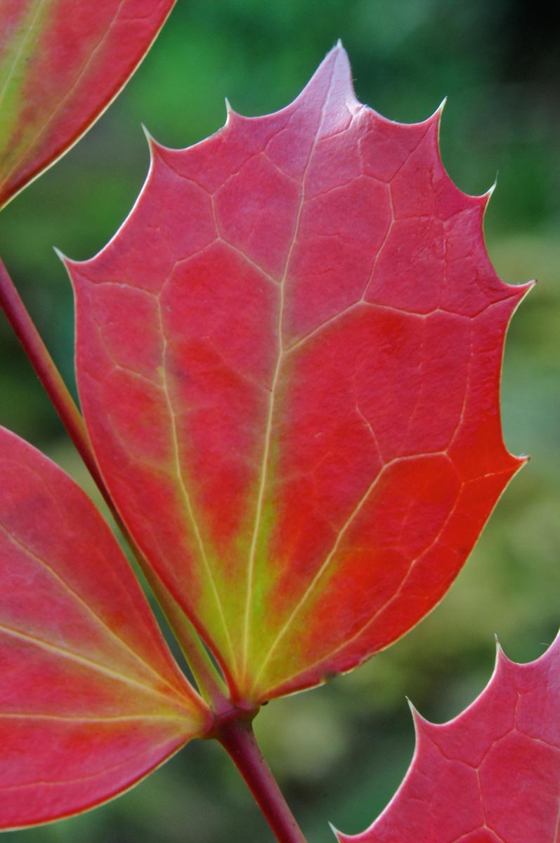 * Pages 25/28. Le chapitre des mahonias est fantastique. Avec Mahonia confusa qui se présente sous un manteau de givre, alors que Mahonia savilliana s'habille en un rouge rutilant à faire des envieux. Puis Mahonia eurybracteata et lomariifolia exhibent des ramures qui font penser à des squelettes de poissons ou encore à des carapaces de crustacées. Toutes les espèces citées s'avèrent encore plus enviables quand on apprend qu'elles sont rarement malades, qu'elles supportent l'ombrage et qu'elles résistent étonnamment à la sécheresse.