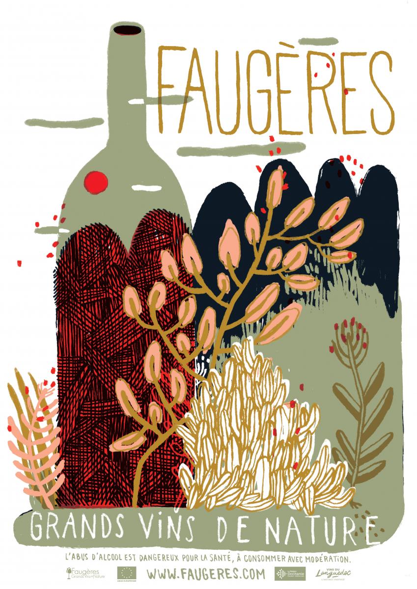Au cœur d'un paysage de garrigue, adossées sur des collines pouvant culminer jusqu'à 300 mètres d'altitude, les vignes de Faugères forment un balcon qui domine : la plaine de Béziers qui s'étend jusqu'à la Méditerranée, le massif des Pyrénées et le Caroux. Essentiellement situées dans le Parc Naturel Régional du Haut-Languedoc, elles bénéficient ainsi d'un environnement exceptionnel qui a tôt fait d'orienter les vignerons dans le choix de la préservation de ce dernier.