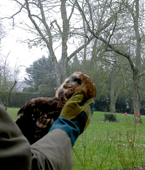 Voici quelques images de moments de grâce où l'on communique avec un rapace en tentant d'apaiser sa peur, depuis la sortie de la cheminée jusqu'au lâcher dans le jardin...