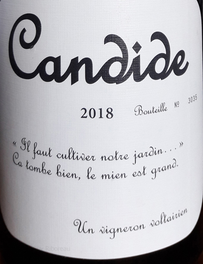 L'art et la manière de faire un bon vin se retrouvent dans "Candide", un blanc souple, très fin, 100% Chenin, élevé sur lies en foudres pendant six mois, qui se rapproche des Montlouis et Vouvray mais en plus charnu, légérement salin et plutôt minéral. Un vin qu'on servira sans hésiter sur un un filet de saint-pierre ou  une marmite dieppoise.