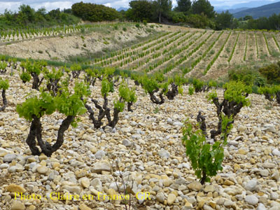 Il faut encore marcher pour atteindre l'étape des fromages, l'occasion d'admirer les vignes et leurs galets...