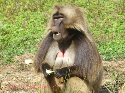 Les Geladas sont peu connus du grand public malgré leurs caractéristiques bien particulières : une chevelure en forme de cape longue et abondante (chez les mâles uniquement) et une poitrine dépourvue de poils en partie haute laissant voir une .zone de peau rouge en forme de sablier. Chez les femelles, cette zone se couvre de vésicules qui gonflent lorsqu'elles sont en chaleur. Une façon de signaler leur état aux mâles du groupe. Ils vivent en harem, un mâle pour plusieurs femelles.
