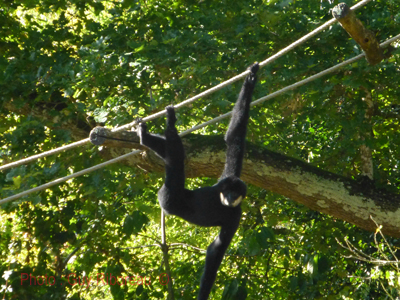 Ils sont de 2 sortes à la Vallée des singes : les Gibbons à favoris blancs et les Gibbons à bonnet.