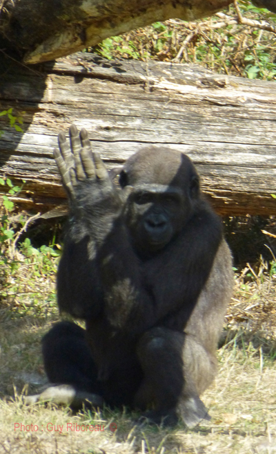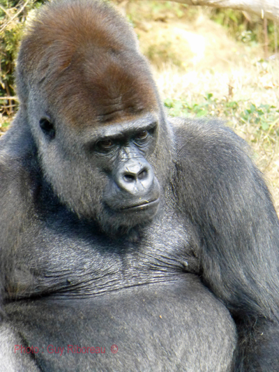Yaoundé, gorille mâle, 220kg,, chef de clan (et entendant le rester !). Les gorilles sont les plus gros singes du monde