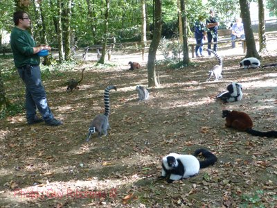 Pour les avoir découvert dans leur environnement naturel à Madagascar, l'auteur de ces lignes a une tendresse particulière pour ces petits êtres agiles qui passent pas mal de temps au sol avant de grimper prestement.dans un arbre en cas de danger. Les lémuriens comportent plusieurs catégories largement représentées au parc : Maki Catta, Lémur couronné, Lémur à ventre roux, lémur noir, lémur roux.