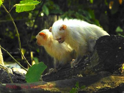 Ouistitis argentés, face rose et queue noire. Rares en captivité