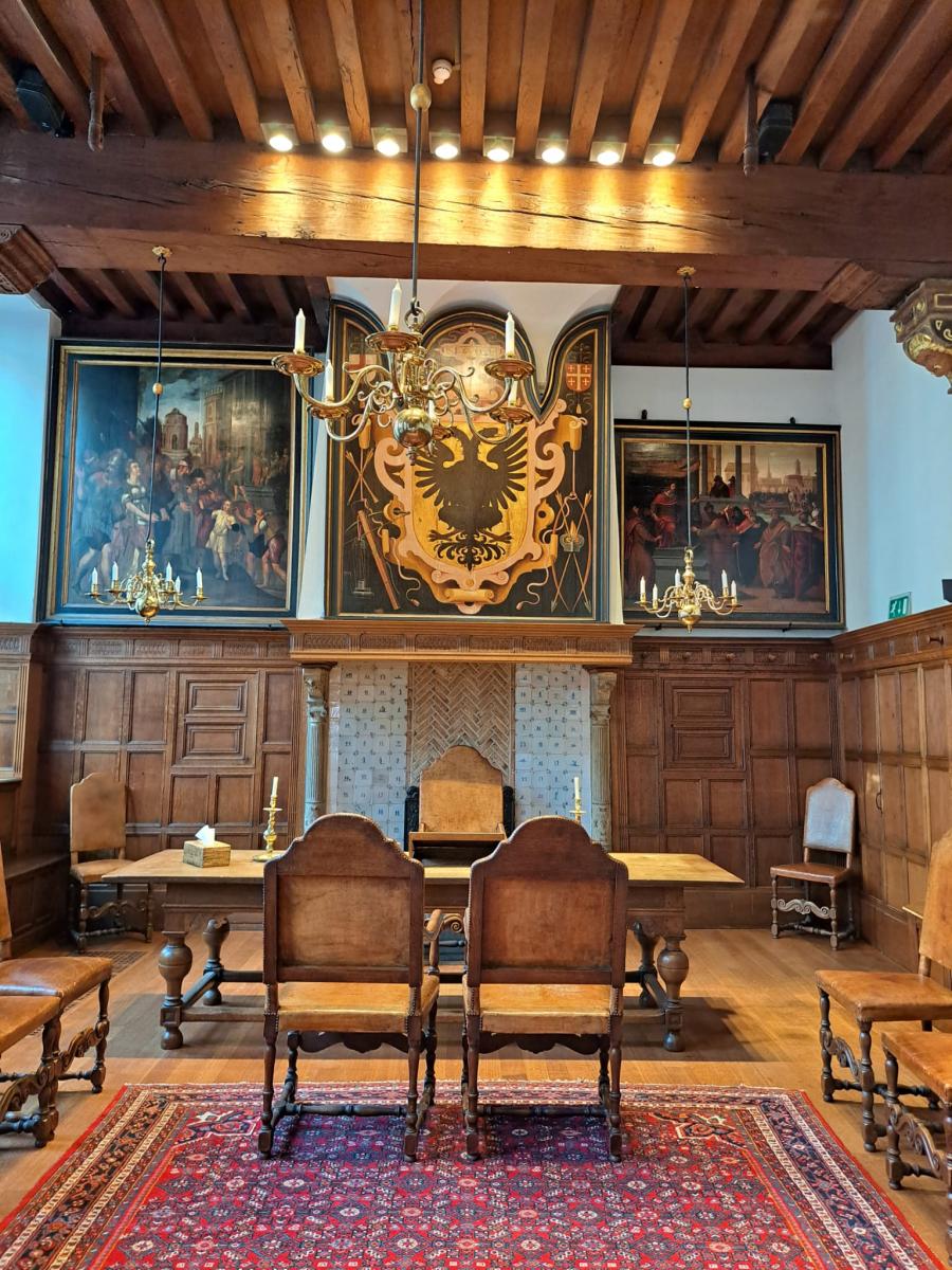 Entouré de douves en eau et de jolis jardins, il possède de belles collections d'armes, de mobilier ancien, de peintures hollandaises.