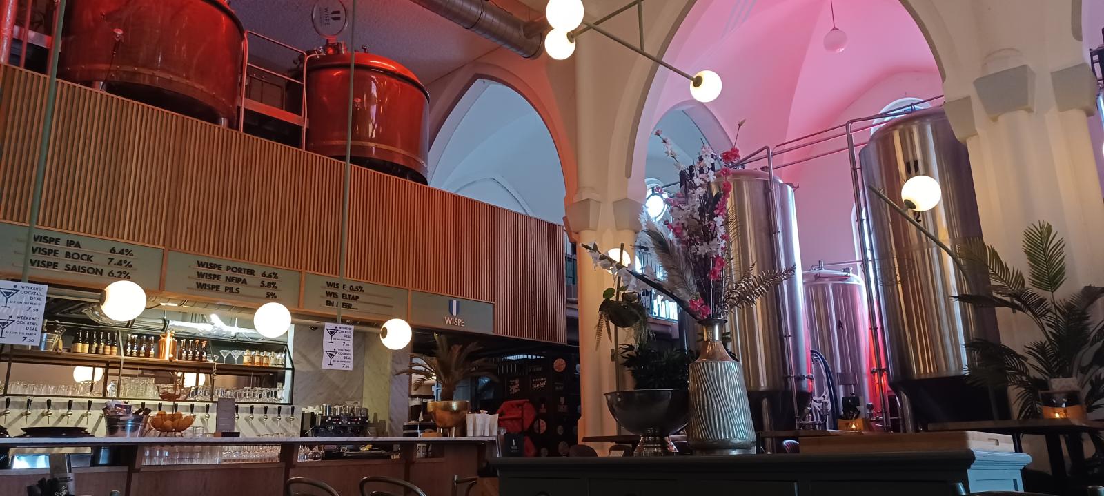 La brasserie porte le nom de Wispe, déjà mentionné au 12e siècle car la ville produisait alors de la bière et du gin. L'endroit, pour être déconcertant, n'en est pas moins très agréable avec une jolie terrasse le long d'un canal.