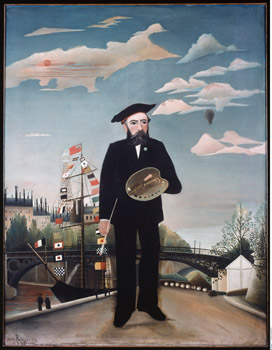 Né à Laval, en Mayenne, le 21 mai 1844, issu d'une famille modeste, il n'est pas douanier mais employé à l'octroi, en faction au pont Saint Nicolas. Copiste au Louvre, il expose avec le groupe des Indépendants. Pour beaucoup, il n'est qu'un peintre du dimanche. A la fois candide et rusé, d'une moralité douteuse (il a été condamné pour vol puis pour escroquerie et porte des palmes académiques auxquelles il n'a pas droit), le "gabelou" piétine jusqu'en 1907. Sa carrière prend alors un tournant décisif avec la rencontre d'Apollinaire qui le présente à Picasso. Le peintre espagnol donnera, dans son atelier du Bateau-Lavoir, en l'honneur de son aîné, un banquet mémorable. Affranchi des règles de la perspective, de la réalité anatomique, des proportions, Rousseau fait de son apparente maladresse la caractéristique essentielle de son art.