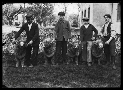 Photographies de mérinos et de bergers à Rambouillet, tirées des plaques de verre du fonds de la Bergerie nationale, première moitié du xxe siècle. 20160285/746-748. © Arch. nat