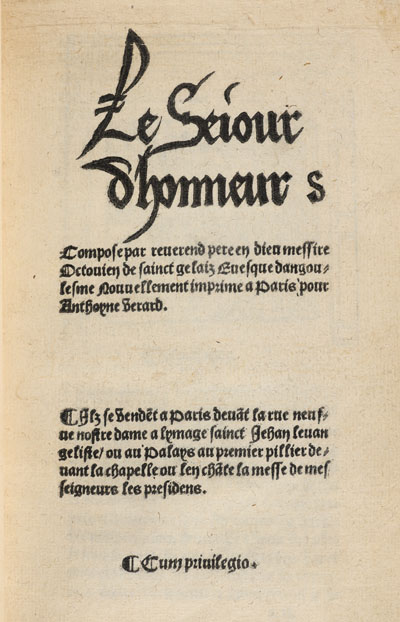 Le Séjour d'honneur de Octovien de SAINT-GELAIS, 1519