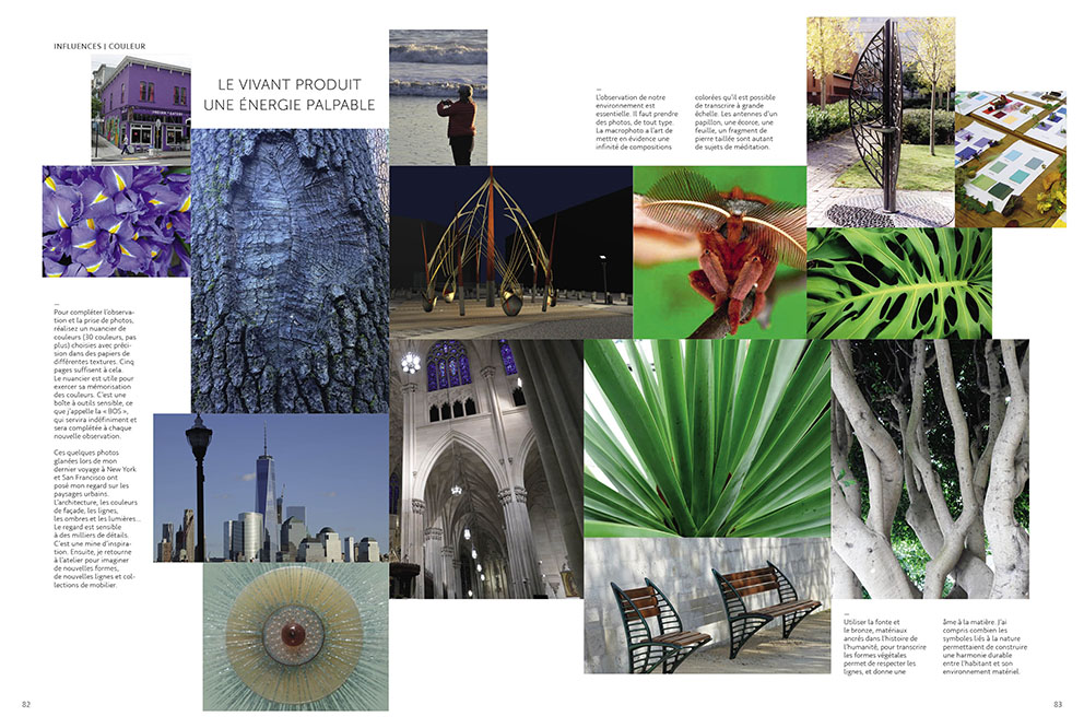 On laisse aussi parler la plasticienne Françoise Persouyre qui connait et réalise des objets utiles et poétiques pour les espaces publiques en ville. Pour activer son cortex dans le but d'avoir des idées nouvelles, elle voyage. De son dernier séjour à New-York et San Francisco, elle rapporte une sélection de photos publiées dans Garden_Lab, des scènes qui influenceront tôt ou tard son oeuvre. Elle explique : " le regard est sensible à des milliers de détails. C'est une mine d'inspiration. Ensuite je retourne à l'atelier pour imaginer de nouvelles formes, de nouvelles lignes et collections de mobilier ".