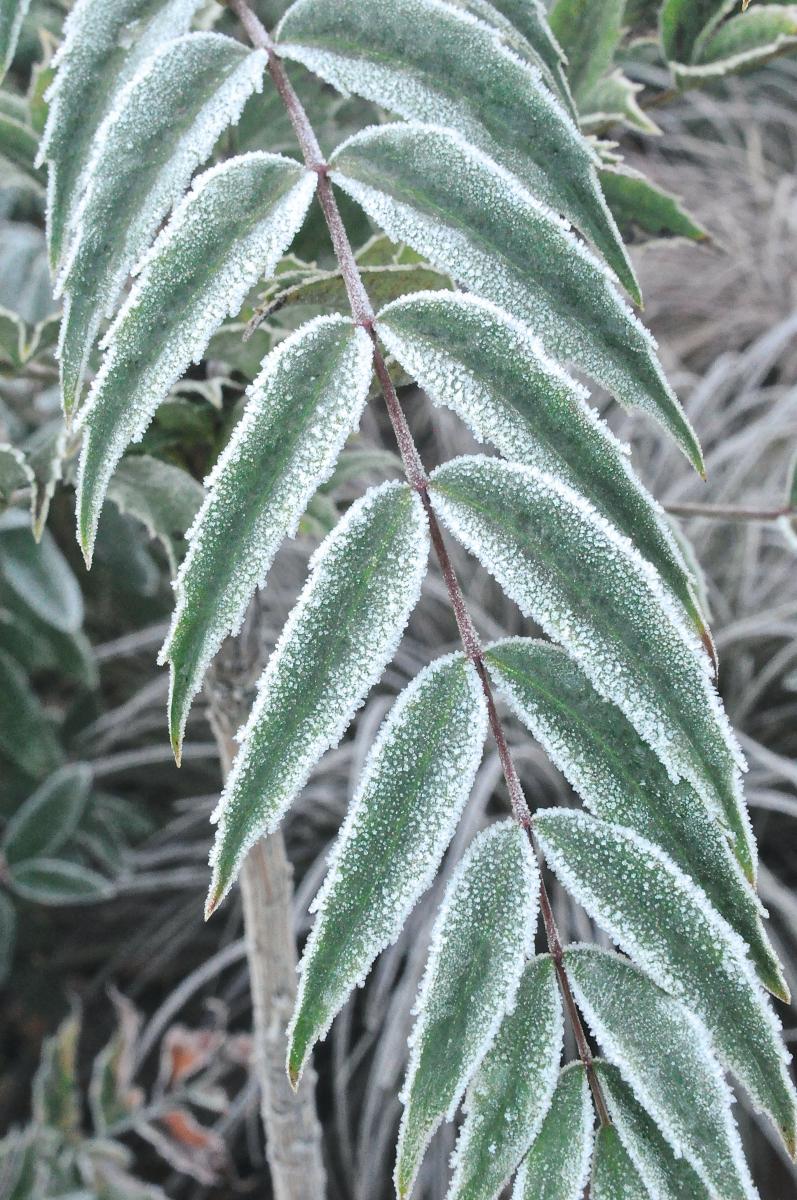 * Pages 25/28. Le chapitre des mahonias est fantastique. Avec Mahonia confusa qui se présente sous un manteau de givre, alors que Mahonia savilliana s'habille en un rouge rutilant à faire des envieux. Puis Mahonia eurybracteata et lomariifolia exhibent des ramures qui font penser à des squelettes de poissons ou encore à des carapaces de crustacées. Toutes les espèces citées s'avèrent encore plus enviables quand on apprend qu'elles sont rarement malades, qu'elles supportent l'ombrage et qu'elles résistent étonnamment à la sécheresse.