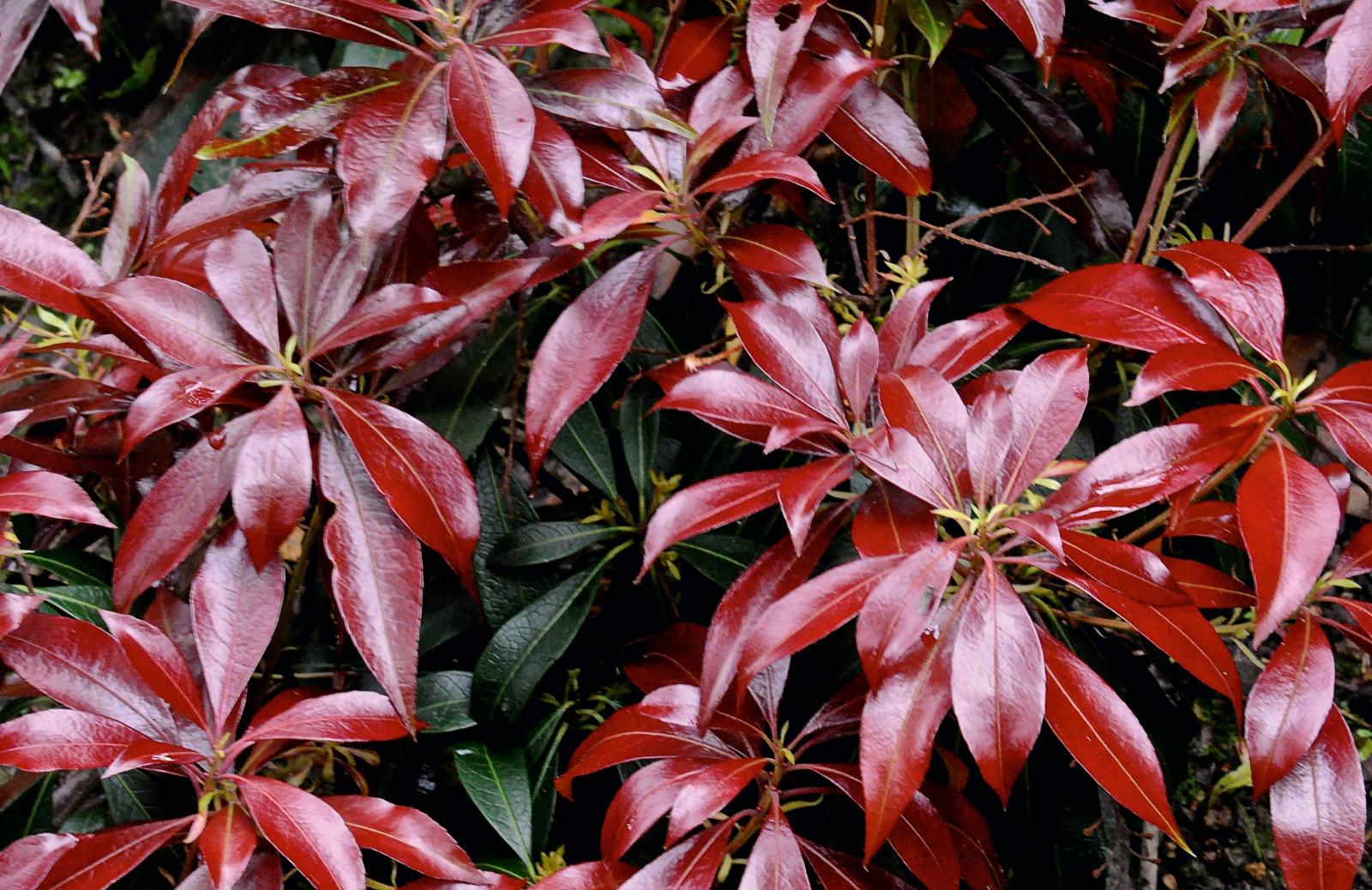 * Pages 68/69. Plein feu sur les piéris asiatiques qui, avec leurs feuillages souvent teintés de rouge (de vert aussi, d'argent, de jaune) s'avèrent trouver les climats breton et normand bien à leur goût. Ce sont alors au printemps des montagnes enflammées.