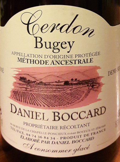 Dans les vins du Bugey, on trouve de petites merveilles de bulles à servir très froides, à l'apéritif, sur une salade de fruits ou un dessert chocolaté. Daniel Boccard à Jujurieux (Ain) produit un Cerdon "méthode ancestrale" de 8,5° très souple, rafraichissant en diable. La principale originalité de la méthode ancestrale, telle qu'elle est pratiquée à Cerdon, est la fermentation alcoolique à basse température (+1 et +9°C), sans levurage. Un bon rouge "de soif" pour l'été ! Prix : NC