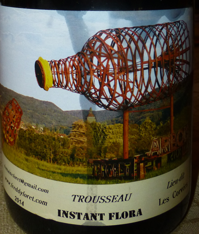 Jura encore, Freddy Foret à Arbois conjugue l'art du vigneron et celui de la soudure pour créer des sculptures étonnantes en rapport avec la vigne et le vin. Son Instant Flora 2014, un 100% Trousseau, est un bel exemple de son savoir-faire de vigneron. Léger, frais, aromatique en diable, il pourra être de toutes les fêtes de l'été. Prix : NC