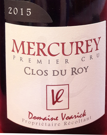 Bourgogne Un Mercurey Premier Cru Le Clos du Roy 2015 du Domaine Voarick (Famille Picard). Un beau vin d'une grande élégance, très équilibré, souple. A boire sur des brochettes de filets de boeuf rapidement grillés sur les braises. Royal !. Un prix justifié : 20€