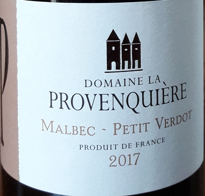 Pays d'Oc La Provenquière Cuvée P Malbec - Petit- Verdot. 2017. 70% de Malbec qui donne à ce vin sa structure et sa couleur foncée tirant vers le grenat. A servir sur un plateau de charcuteries ou un andouillette de Troyes/gratin dauphinois (5,95€).