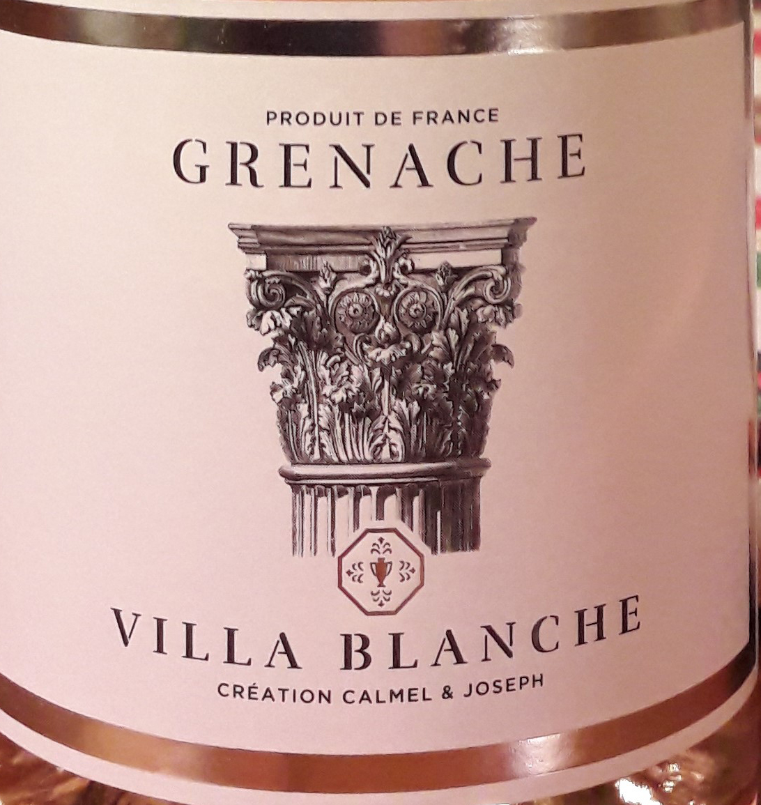 Pays d'Oc Calmel et Joseph Cuvée Villa blanche Grenache. 70% de Grenache noir, 30% de Grenache gris. Rafraichissant.