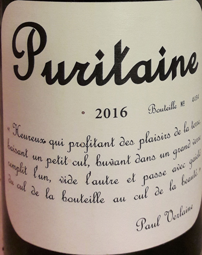 Cabardès Maison Ventenac Puritaine rouge 2016. Un 100% Syrah, d'une très grande élégance gustative. Elevé en jarres de 539 litres, ce vin illustre bien la constante recherche de qualité, marque de fabrique de Ventenac. Pas de recours aux herbicides, respect des sols, assemblages subtils, les vins de la Maison sont d'une grande originalité. Fraîcheur, jolies notes de fruits rouges, bel équilibre, la cuvée Puritaine trouvera sa place face à un rôti de veau aux morilles ou une pintade à la crème.(18€).