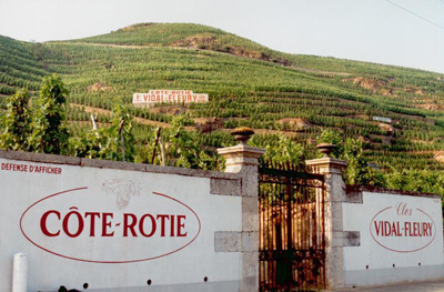 Vidal-Fleury a la chance de diposer de belles parcelles sur les collines de la rive droite du Rhône près d'Ampuis exploitées par les Romains il y a plus de 2000 ans. Côte-Rôtie est l'un des plus beaux terroirs des Côtes du Rhône septentrionales. Ses terrasses escarpées ne sont pas faciles à cultiver mais les cépages Syrah (rouge) et Viognier (blanc) y trouvent de quoi se développer harmonieusement. L'appellation Côte-Rôtie ne concerne que les rouges (qui peuvent contenir du Viognier aux côtés de la Syrah majoritaire).