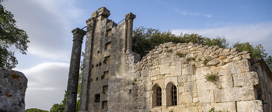 Château Bas doit son nom aux restes d'un temple corinthien bâti dans la décennie 30 à 20 avant notre ère dans une cité gallo-romaine sans doute importante pour avoir construit un bâtiment.de cette envergure proche d'une source. Ces vestiges sont classés Monument historique depuis 1840.