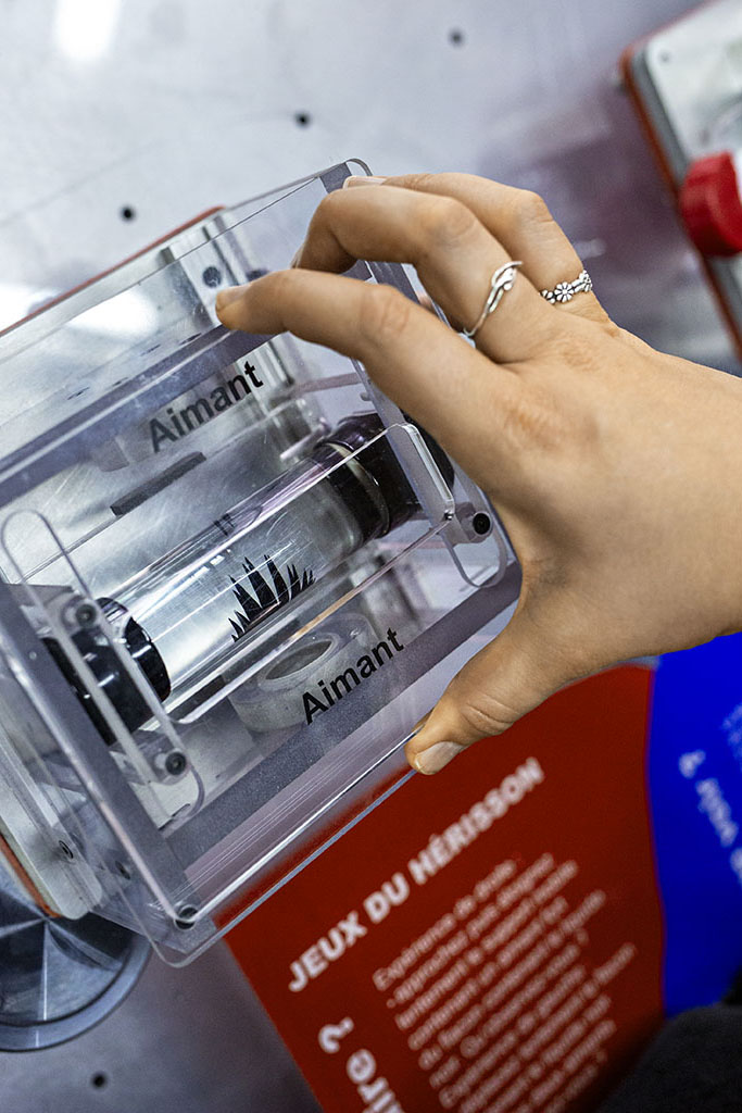 Cet îlot invite le public à visiter diverses applications du magnétisme omniprésentes dans notre quotidien et en explique les principes de fonctionnement.