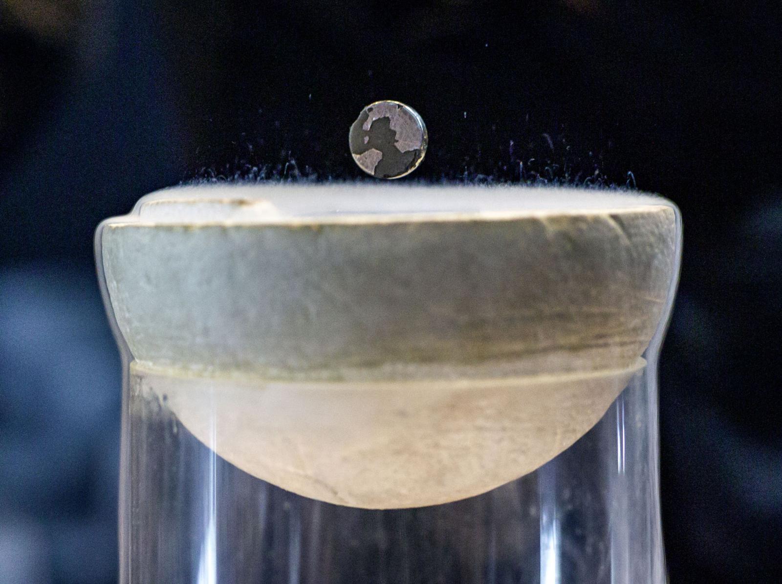 Enfin, la visite de cet espace se termine par une illustration expérimentale d'une propriété aux effets extrêmement faibles, mais commun à tout matériau : le diamagnétisme, qui peut être à l'origine d'un phénomène de lévitation.