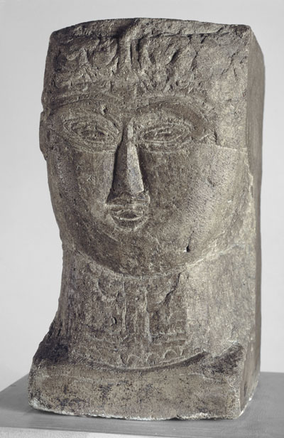 Tête de femme 1911-1913 Sculpture en calcaire 47 x 27 x 31 cm Paris, Centre Pompidou, musée national d'Art moderne/Centre de création industrielle Photo © Centre Pompidou, MNAM-CCI, Dist. RMNGrand Palais / Jacqueline Hyd
