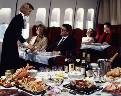 1988. Service restauration à bord d'un Boeing 747 ©Air France