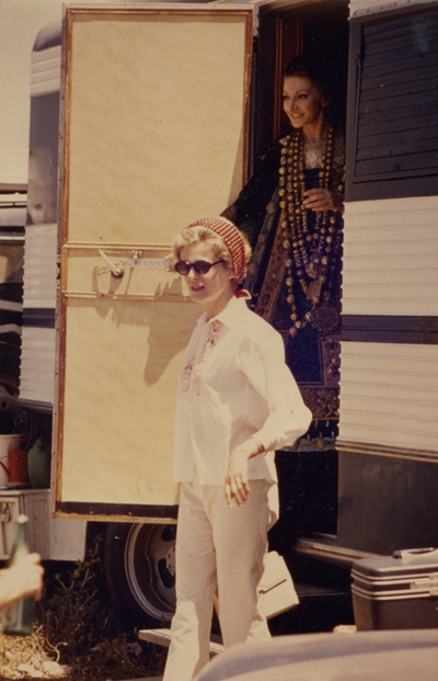 Sur le tournage du film Médée de Pasolini, avec son amie Nadia Stancioff