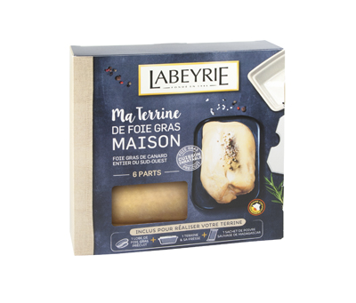 Une formule originale présentée dans un emballage carton vous propose de préparer vous même votre terrine de foie gras. On y trouve un lobe de foie gras précuit, une terrine et sa presse et un sachet de poivre de Madagascar pour corser l'affaire présentée come 'inratable". Il fallait y penser.