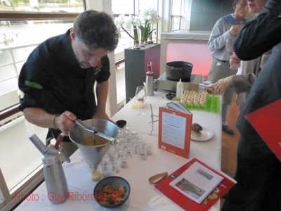 Convier trois restaurateurs ardéchois de renom à une présention parisienne de mets en accord avec quelques vins de la région, c'était un beau pari. Que boire avec un velouté de crème de marron crémeux ? Avec quoi associer une charcuterie locale de belle facture ? Quel dessert pour un Crémant d'Ardèche aux fines bulles et à l'élégante minéralité ?
