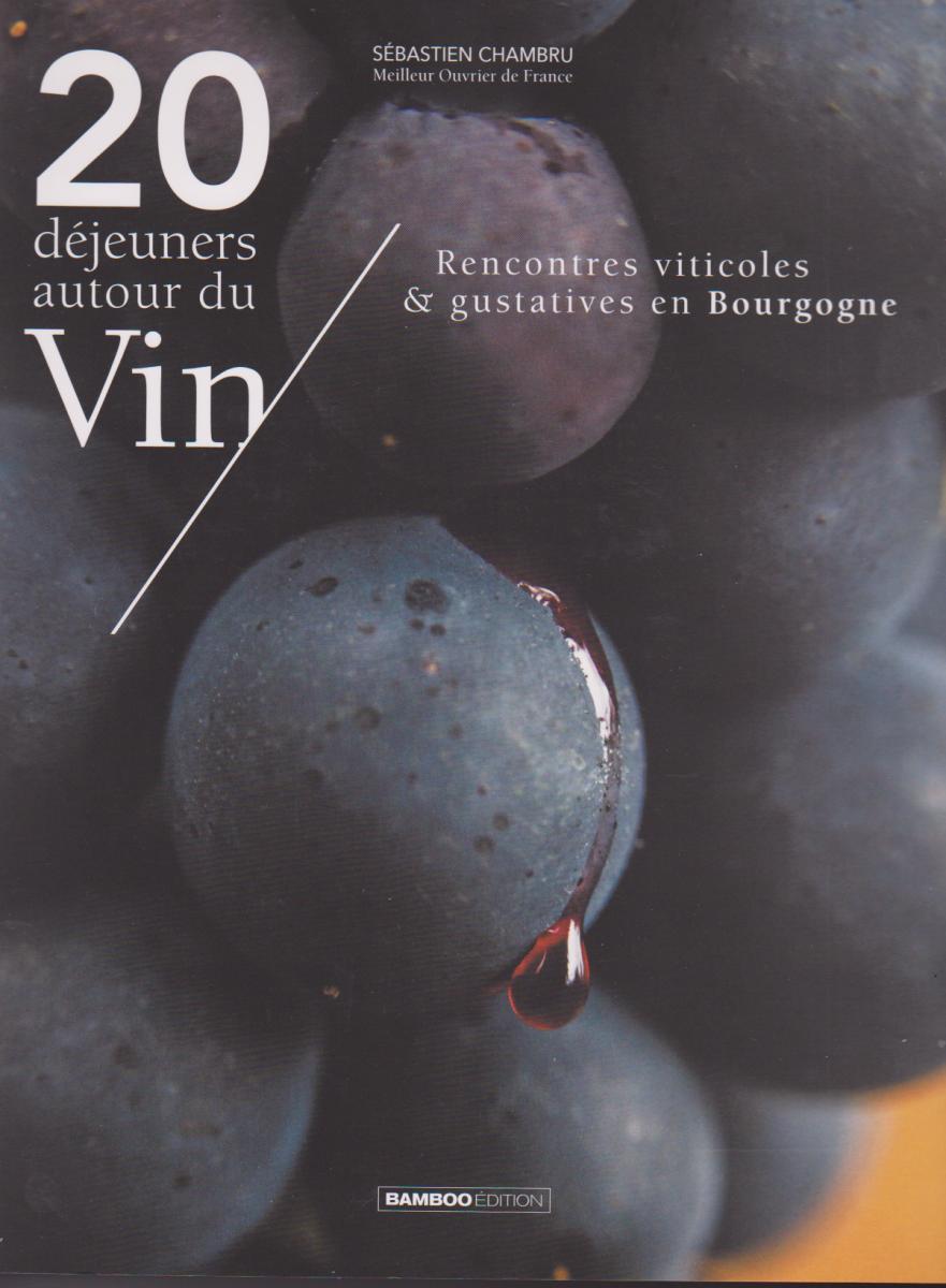 "Vingt déjeuners autour du vin" de Sébastien Chambru, Bamboo Editions. L'auteur, chef couronné de "L'O des vignes" à Fuissé nous propose en guise de carnet de route vingt accords mets-vins bourguignons. Avec ses amis vignerons de cette terre de cocagne, il a élaboré des menus qui sont autant de propositions gourmandes (avec leurs recettes) que des portraits très illustrés de ces mêmes amis producteurs de vins de qualité. Les vignerons ont joué le jeu et on trouve dans ce livre des tas d'idées appétissantes. Que manger avec un Mâcon Verzé de Nicolas Maillet ? Sébastien Chambrun propose ce qu'il appelle des "langues de chèvre",, un savant assemblage de courgettes, de fromages de chèvre sec et frais, de pulpe d'oignon doux et de boulgour. Le tout gratiné. Hum... Et que dire de "l'Oeuf des vignes", un oeuf meurette au Pommard de chez Philippe Pacalet ? Ce livre donne envie de beaux accords gustatifs.