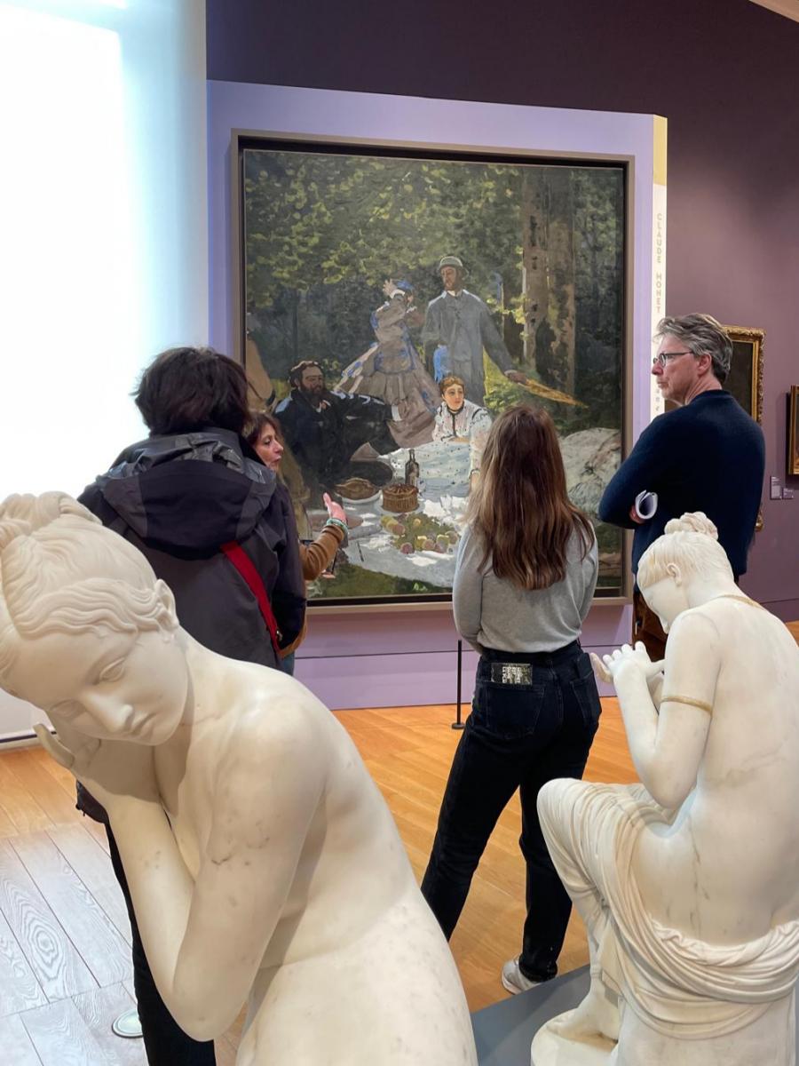 Un "Déjeuner sur l'herbe" tronqué signé Claude Monet. Une drôle d'histoire. Souhaitant peindre à son tour (après Edouard Manet) un "Déjeuner sur l'herbe", Claude Monet entreprend une oeuvre colossale sur six mètres de longueur avec de nombreux convives. Mais dépassé par l'ampleur de la tâche, criblé de dettes, il laisse la toile inachevée à son propriétaire auquel il doit de nombreux loyers impayés. L'oeuvre est alors stockée dans une cave humide où elle s'abime rapidement. Quand Monet la récupère en 1884, il décide de la scinder en trois parties. C'est le fragment central, restauré (un prêt exceptionnel du Musée d'Orsay) qui est actuellement présenté au Musée des Beaux Arts et d'Archéologie de Besançon.