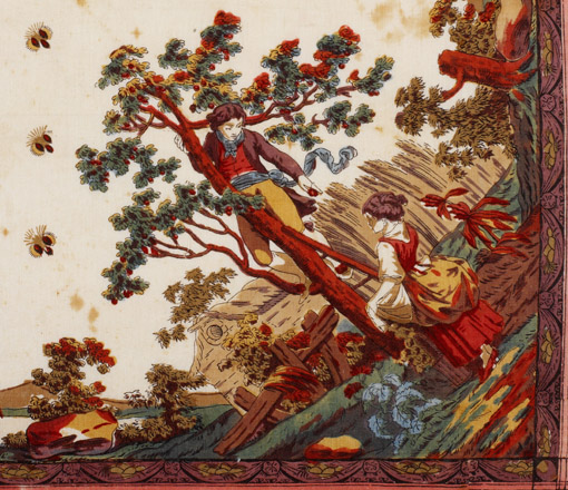 Toile de Jouy "Les occupations de la ferme", impression à la plaque de cuivre sur coton,