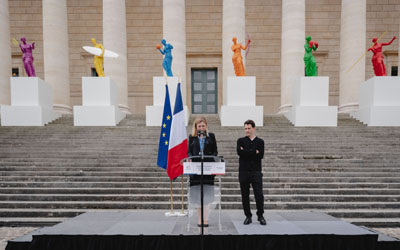 Surélevée, la façade nord de l'Assemblée Nationale se voit de loin avec son fronton triangulaire et sa colonnade. Six Vénus aux couleurs vibrantes évoquant divers sports comme le basket, la boxe, le javelot, le para-tir à l'arc, le surf et le tennis investissent, pour la première fois, les marches de ce lieu de pouvoir. Elles resteront en place le temps des Jeux Olympiques et Paralympiques et des Journées du Patrimoine. Impossible de les rater !