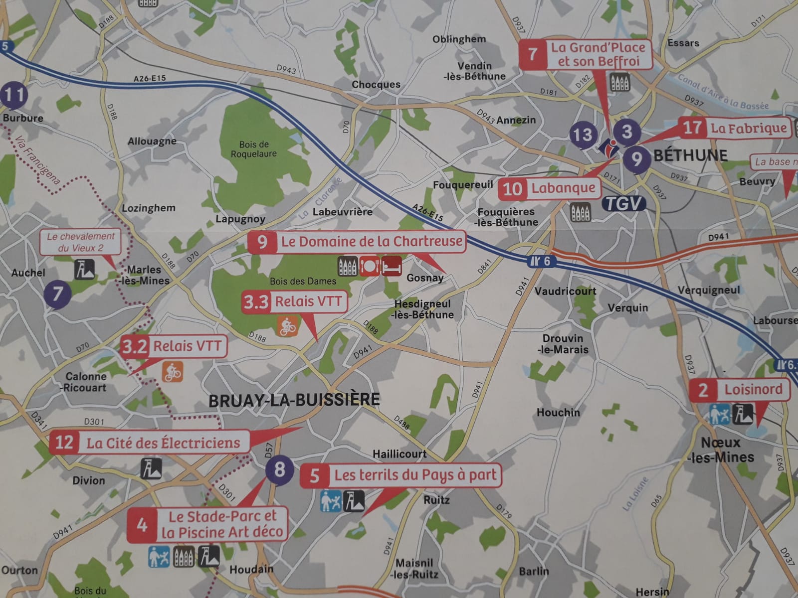 Une "renaissance" pour deux sites : le beffroi de la Grand'Place à Béthune et la Cité des Electriciens à Bruay-La Buissière. Comme on le voit sur cette carte, les deux lieux sont très proches l'un de l'autre.