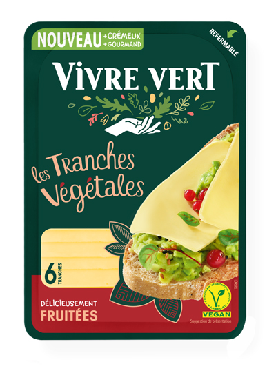 Autre produit Vivre vert dégusté. les "Fondantes végétales", des tranches de ce qui ressemble à un fromage mais qui sont faites, là encore, d'huile de noix de coco, fécule de pomme de terre, tapioca, acidifiant, malodextrine, colorant, extraits d'olive et de paprika. La texture est agréable mais le goût n'est vraiment pas au rendez-vous. Dommage.pour ce "fromage" végétal.