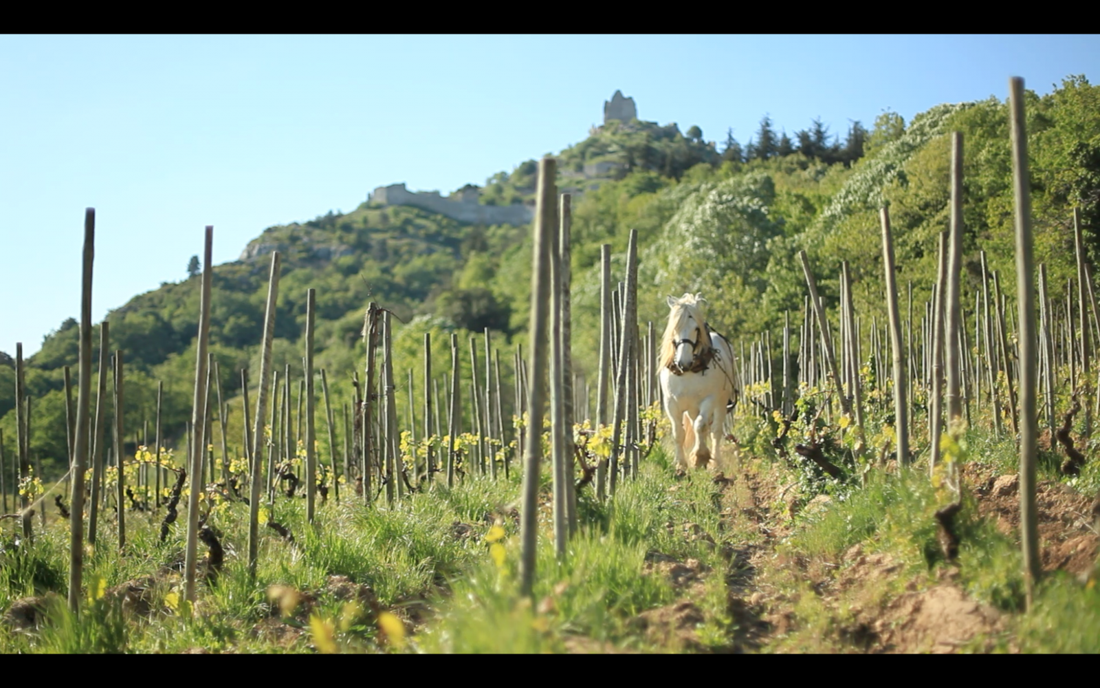 "Nous avons planté autour de notre ferme de Lorient à 500m d'altitude sur l'AOC Saint Péray 4 hectares de roussanne et marsanne (respectivement 70% & 30%). Nos parcelles entourent la maison avec une vue imprenable sur la vallée du Rhône et le Vercors. Elles sont exposées sud et sud-est, protégées du vent du nord par des haies d'espèces locales que nous avons plantées et des forêts que nous avons préservées." (Laure et Dimitri)