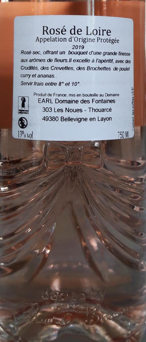 Côté rosés tranquilles maintenant,, nous en avons découvert de remarquables. Pour revenir sur les bords de Loire, testez donc celui du Domaine des Fontaines à Thouarcé-Bellevigne en Layon. Cette entreprise familiale au coeur du Bonnezeau a élaboré un rosé sec d'une remarquable élégance, "La robe d'Iris". Le haut de cette robe figure sur l'étiquette et le vêtement se poursuit dessous en s'élargissant  dans les moulures de la bouteille jusqu'au petit noeud qui ferme la robe sous la contre-étiquette. Une réussite visuelle qui se poursuit de manière olfactive et gustative. Ce rosé de Loire est vif et fin; il possède une belle structure qui lui donne une remarquable longueur en bouche. Il est rare de déguster un rosé aussi équilibré et aussi charmeur. Il est parfait sur des brochettes de crevettes à l'ail ou sur un poulet tandoori.